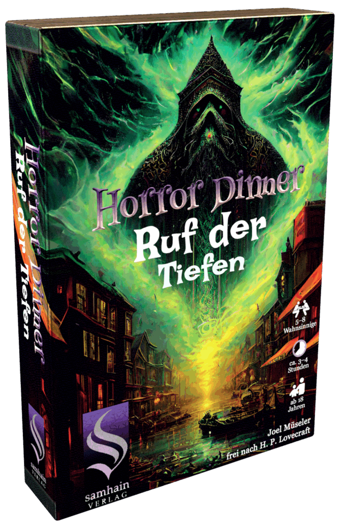 Lass den Wahnsinn hinein. Mache ihn mit deinen Gästen bekannt. Niemand von euch wird das Mahl bei geistiger Gesundheit überstehen! „HORROR DINNER – Der Ruf“ bringt die Albträume aus H. P. Lovecrafts Call of Cthulhu und anderen Schrecken auf den Esstisch!