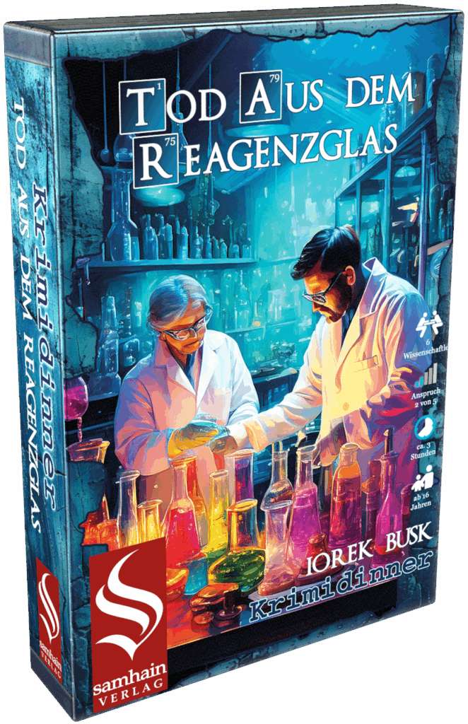 „Tod aus dem Reagenzglas“ von Iorek Busk ist das erste Krimidinner aus unserer neuen Serie „Krimis aus dem Hier und Jetzt„. Es ist für sechs Wissenschaftler* ab 16 Jahren geeignet und hat eine Spieldauer von ca. 2-3 Stunden.